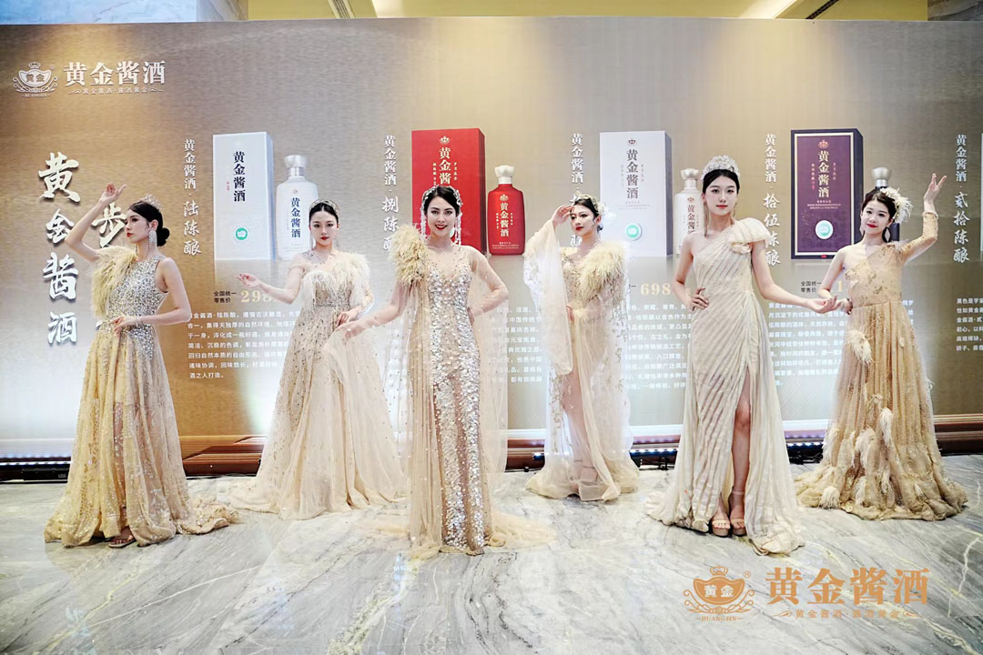 優(yōu)雅靚麗的模特登場,為與會者們悉數(shù)演繹黃金醬酒陸陳釀、捌陳釀、拾陳釀、拾伍陳釀、貳拾陳釀的無限魅力。大家在近距離鑒賞黃金醬酒的同時,更深刻了解到黃金醬酒的產(chǎn)地特點、生產(chǎn)工藝、產(chǎn)品品質(zhì)和口感風味,感受來自茅臺鎮(zhèn)正宗醬香白酒的多元文化魅力。